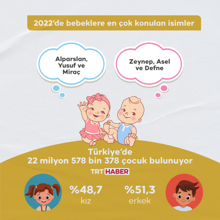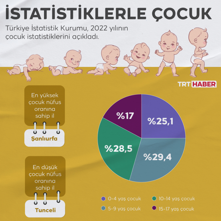 Türkiye'nin geçen yıl sonu itibarıyla 22 milyon 578 bin 378 olarak belirlenen çocuk nüfusu, ülke nüfusunun yüzde 26,5'ini oluşturdu. Çocuk nüfus oranının 2030'da yüzde 25,6, 2040'ta yüzde 23,3, 2060'ta yüzde 20,4, 2080'de de yüzde 19 olacağı öngörülüyor.