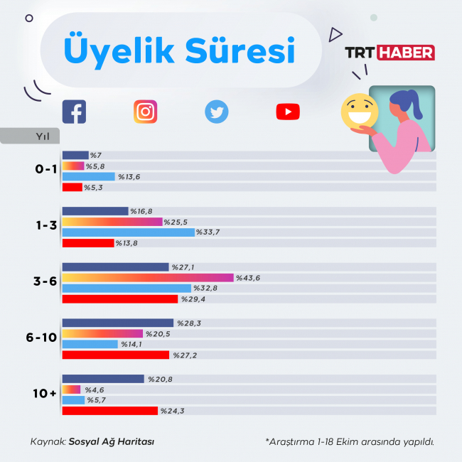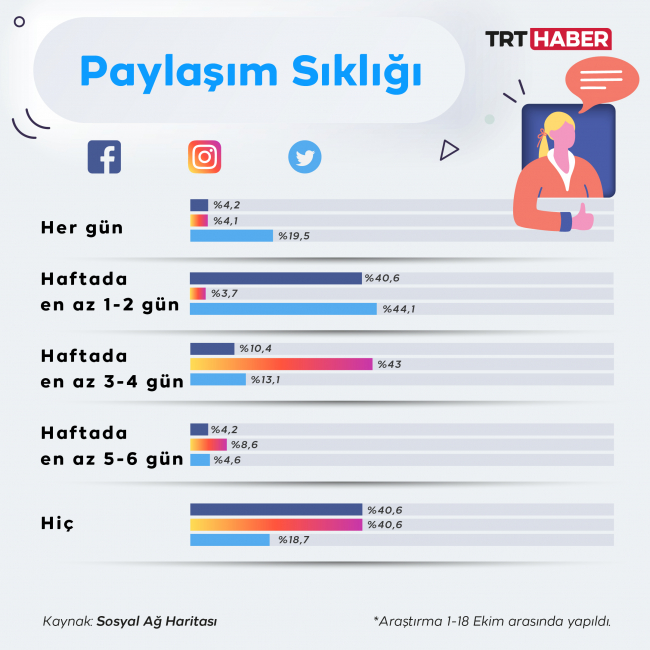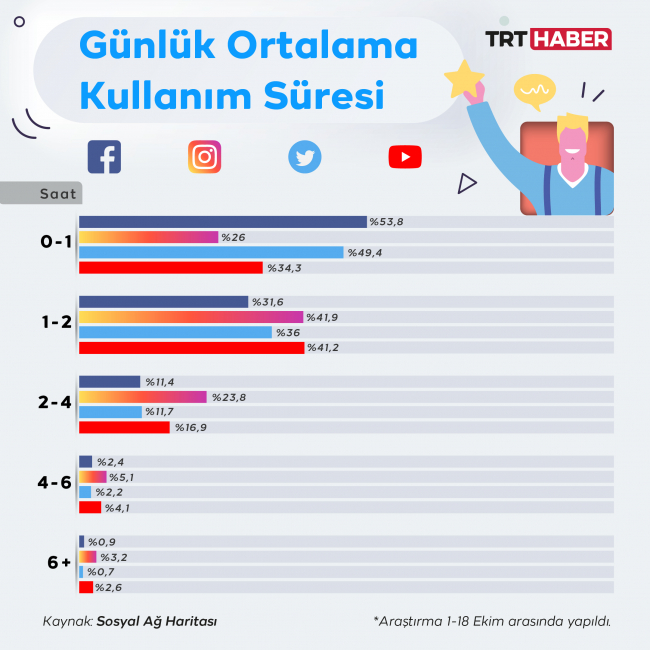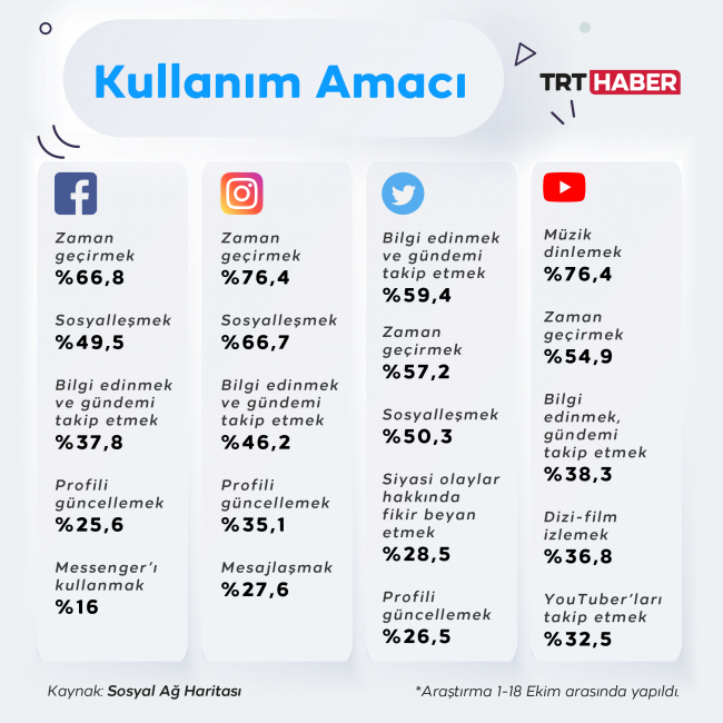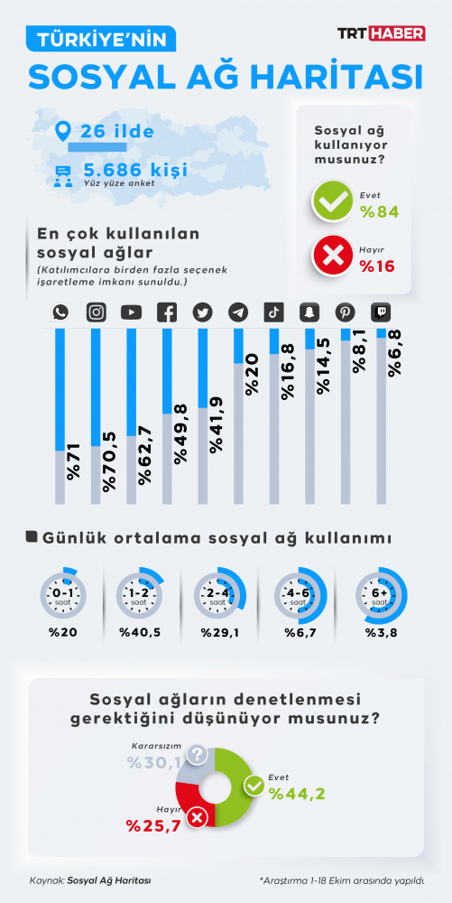 Cumhurbaşkanlığı İletişim Başkanlığı'nın hazırladığı Sosyal Ağ Haritası'na göre, toplumun büyük kesimi gündelik hayatının her aşamasında çevrim içi.