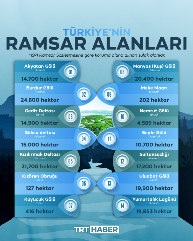 Bitki ve hayvan çeşitliliği için tropik ormanlardan sonra en önemli ekosistemleri oluşturan sulak alanlar konusunda Türkiye büyük bir hazineye sahip. Ülke genelinde 14 Ramsar alanı yanında 59 ulusal öneme sahip, 33 de yerel öneme sahip sulak alan bulunuyor. 1999-2023 arasında 75 sulak alan yönetim planı hazırlanarak uygulamaya konuldu.