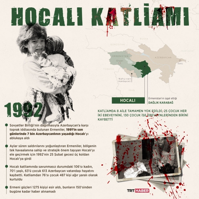 Ermeni kuvvetlerin 29 yıl önce Dağlık Karabağ bölgesindeki Hocalı kasabasında yaptığı katliamın acısı ilk günkü gibi tazeliğini koruyor.