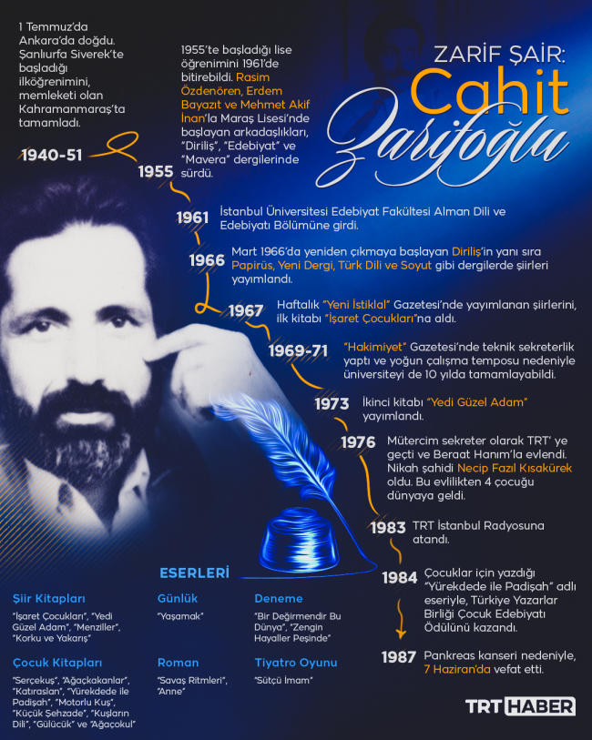 Şiirleriyle bugünün gençliğine yol gösteren, alışılmadık söz dizimleriyle tanınan şair ve yazar Abdurrahman Cahit Zarifoğlu, vefatının 35. yılında eserleriyle anılıyor.