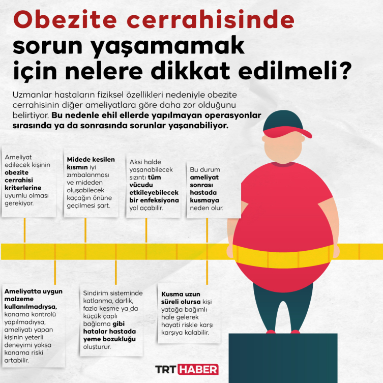 Obezite oranlarındaki artış, cerrahiye başvuruları da artırdı. Ancak deneyim sahibi kişiler tarafından yapılmayan obezite ameliyatları olumsuz sonuçlar doğurabiliyor. Ucuz maliyetler sunarak kazanç sağlamaya çalışan bazı merkezlerin günde 8-10 operasyon yaptığı belirtiliyor.