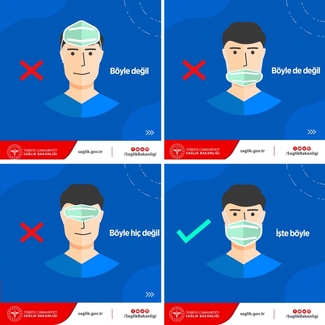 Maske takarken dikkat edilecek husus, maskenin ağız ve burnu kapatması. Maskeyi usulüne uygun takmayanlara idari para cezası verilecek, Türk Ceza Kanunu'nun 195'inci maddesi kapsamında gerekli adli işlem başlatılabilecek.