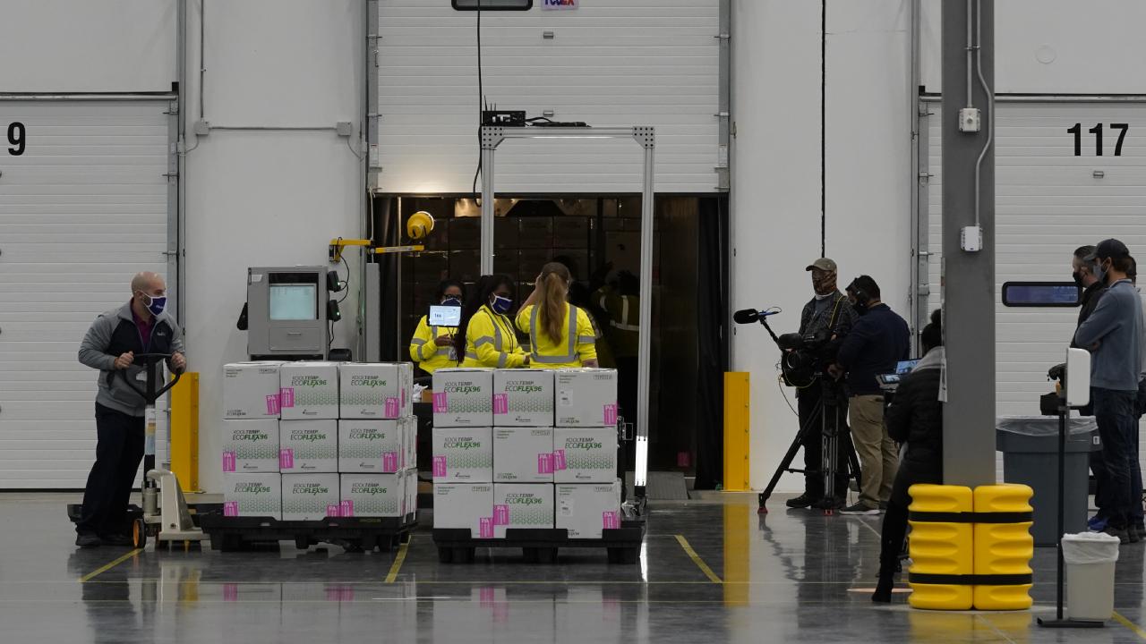 Üretimin yapıldığı Mississippi eyaletine bağlı Memphis'teki merkezden eyaletlere dağıtılması planlanan 5,9 milyon aşı dozu kutuları kargoya yüklendi.