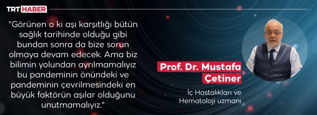 "İngiltere Birmingham'da çiçek aşısının zorunlu tutulması, çocuklarına çiçek aşısı yaptırmak istemeyen ailelerin tutuklanması üzerine belki de tarihin en büyük aşı karşıtı gösterisi yapıldı, Tam 100 bin kişi katıldı bu gösteriye ve daha sonra aşıların aslında zorlayıcı bir şekilde yapılmaması ve insanları ikna ederek uygulanmasıyla ilgili geniş bir konsensus oluşturuldu. Günümüzde pandemide de bu hoşgörünün artık sınırlarının da giderek zorlandığı görülüyor ve birçok ülke aşılarla ilgili çok ciddi önlem ve yaptırımlar uyguluyor. Görünen o ki aşı karşıtlığı bütün sağlık tarihinde olduğu gibi bundan sonra da bize sorun olmaya devam edecek. Ama biz bilimin yolundan ayrılmamalıyız bu pandeminin önündeki ve pandeminin çevrilmesindeki en büyük faktörün aşılar olduğunu unutmamalıyız."