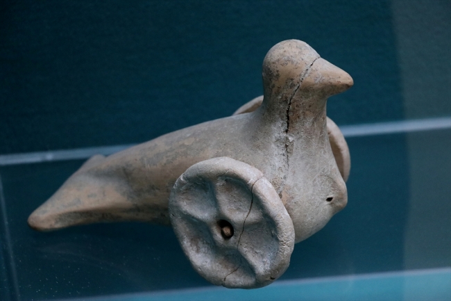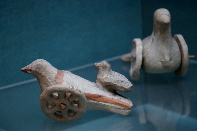"Müzemizde sergilenen bu oyuncaklar, Kütahya'nın Simav ilçesinde bulundu. Yapılan incelemede ise bu oyuncakların Frig uygarlığına ait olduğu belirlendi. Frigler, çocuklarının oynaması için kuş figürlerinden ve pişirilmiş topraktan tekerlekli oyuncaklar yapmış. Bunlar aynı zamanda iple çekilebilen oyuncaklardan. Bölgemizde Friglere ait eserler çok fazla çıkmamış. Müzemizde sergilenen Frig dönemine ait eserler, ünik (eşi, benzeri olmayan) eserlerdir. Bu oyuncaklar 2 bin 700 yıl öncesine ait nadide tarihi eserlerdendir."