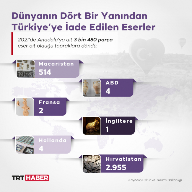 [Grafik: TRT Haber]İşte 2021’de yurtdışından iadesi sağlanan eserler ve getirildikleri ülkeler: