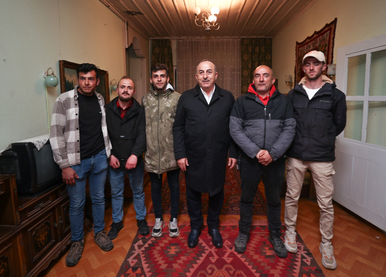 Çavuşoğlu, dizi ekibine çalışmalarında başarılar dileyerek oyuncularla hatıra fotoğrafı çektirdi.