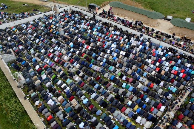 Şenlik öncesi vatandaşlar, Fatih Sultan Mehmet'in de namaz kıldığı rivayet edilen 557 yıllık Kadırga Yaylası Açık Camii'nde çimenler üzerinde cuma namazı kıldı.