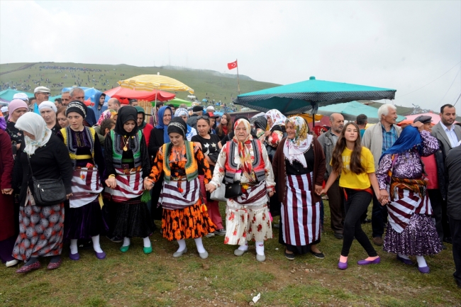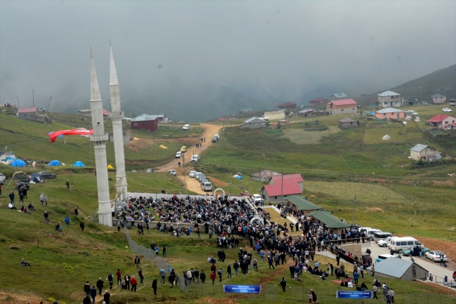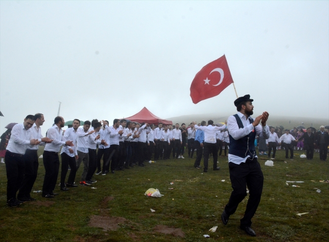 Namazdan sonra yerel sanatçıların sahne aldığı etkinlikte, yöreye özgü giyinenlerin de aralarında bulunduğu binlerce kişi kemençe eşliğinde soğuk, sisli ve yağmurlu havaya rağmen doyasıya horon oynadı.