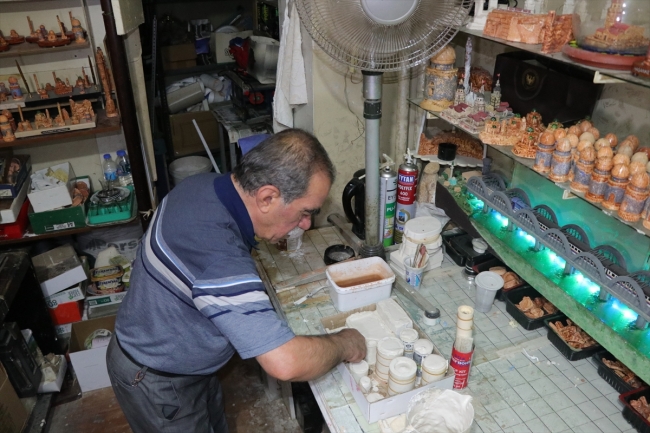 Kıbrıs gazisi Selahattin Cihan, sabah erken saatlerde açtığı 20 metrekarelik dükkanında işe Kur'an-ı Kerim okuyarak başlıyor. Daha sonra temizlediği iş yerinde siparişler doğrultusunda hazırladığı alçıyı önceden hazırladığı kalıplara boşaltıyor, kuruyan kalıplara şekil veriyor.