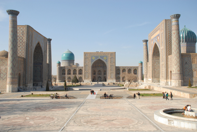 Şehrin merkezi olarak bilinen ve Farsçada "kumlu yer" anlamına gelen Registan Meydanı, Semerkant'ın en önemli simgelerinden.