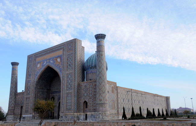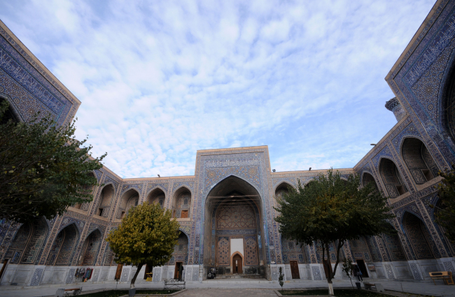 [Tillakari Medresesi'nden bir görüntü. | Fotoğraf: AA]Macar seyyah Vambery ise eserinde Semerkant'ın gerek yerinin güzelliği, gerek çevresini kuşatan toprakların bereket ve verimliliği nedeniyle, Türkistan'da gördüğü diğer kentlerin tümünün üstünde olduğunu ifade etmişti