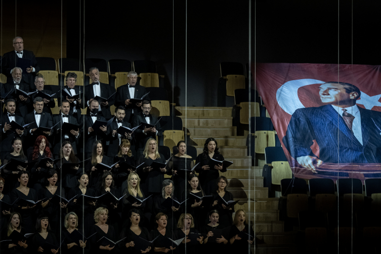 Saygı duruşunun ardından, Ludwig van Beethoven'ın 3'üncü Senfonisi'nden "Cenaze Marşı" ile başlayan konserin açılışında Şef Deliorman, Atatürk ile orkestranın hem tarihsel hem de manevi olarak kenetlendiğini söyledi.