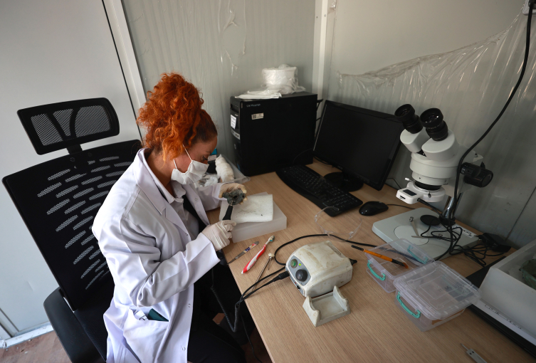 Japonya Hükümetinin mikroskop, 3 boyutlu tarama cihazı, manuel forklift ve kimyasal saklama dolabı gibi teknolojik ekipmanlarla katkı sunduğu merkezde görüntüleme, projelendirme ve tespit çalışmaları yürütülüyor.