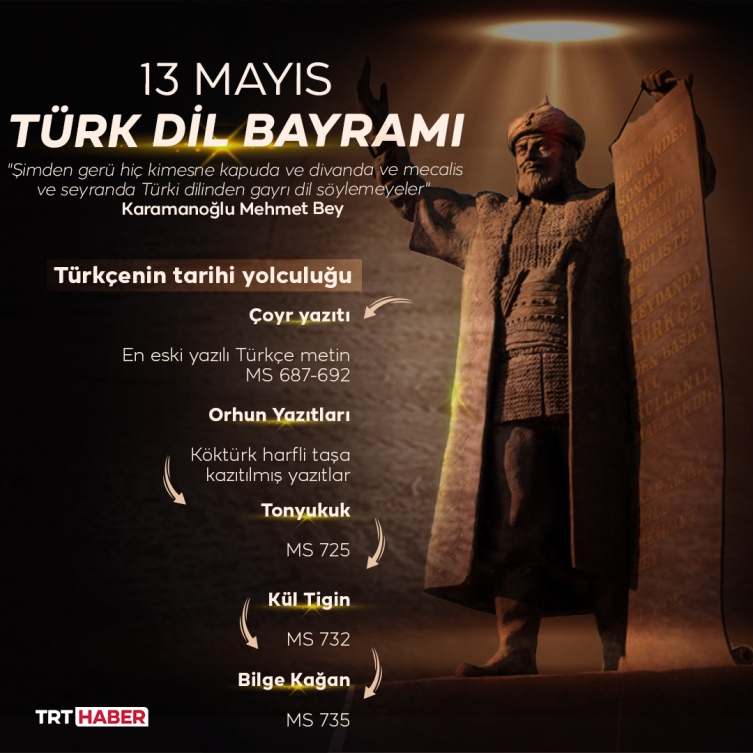 746 yıl önce, 13 Mayıs 1277’de Karamanoğlu Mehmet Bey fermanında, bu ifadeleri kullandı. Bu hadise, her yıl 13 Mayıs Türk Dil Bayramı olarak kutlanıyor.