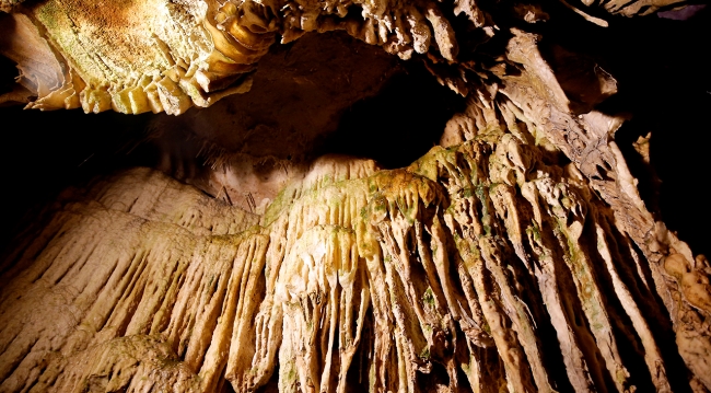 Üzerinde bulunan kalesi ve içinden geçen deresiyle ziyaretçilerini karşılayan mağara, yaklaşık 200 metrelik tahta merdiven üzerinde yürüyüşün ardından iki ayrı kola ayrılıyor. Sol bölümde 150 metrelik yürüyüşün ardından kalker platolar üzerinde görülen, oval şekilli erime çukuru olarak bilinen dolinden gelen suyun aktığı baca göze çarpıyor.