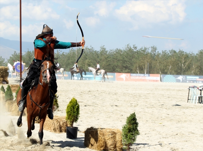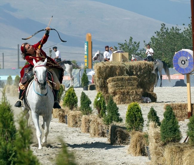 Erdoğan, oldukça çekişmeli geçen atlı cirit, kökbörü müsabakaları ile atlı okçuluk gösterilerini ilgiyle takip ederek festival için kurulan alanda inceleme yaptı, ok atışı gerçekleştirdi.