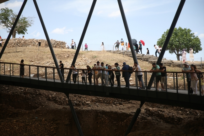 Bayram tatilini fırsat bilen ve Türkiye'nin farklı şehirlerinden kente gelen çok sayıda ziyaretçi, Göbeklitepe'de Neolitik döneme ait, yabani hayvan figürlü "T" biçimli dikili taşları ve tapınak kalıntılarını görme fırsatı buldu.