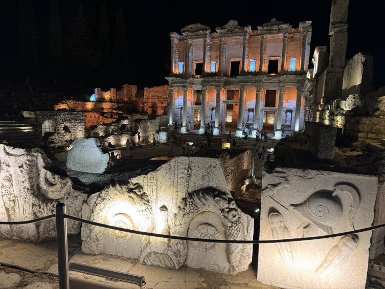 21 metre genişlik ve 17 metre yüksekliğe sahip Celsus Kütüphanesi, zengin mimari süslemeleriyle gece de görenleri etkiliyor. Gece ziyaret edilebilen alanlar arasında, antik dönemde Efes'in ileri gelenlerinin yaşadığı Yamaçevler de yer alıyor.