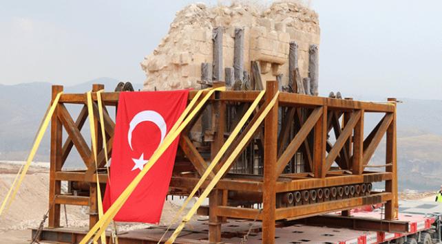"Geçen hafta salı günü üç parça halinde taşımaya başlığımız Hasankeyf Kalesi Orta Kapısı'nın üçüncü parçasını bugün yerine indirdik. Üç parça halindeki yapıyı 4 kilometre yürüttük. Eski Hasankeyf'te koruma altına aldığımız yukarı Hasankeyf turizm alanından buraya turizmciler artık tekneyle gelecek. Böylece buradan Arkeopark'a giriş yapacak."