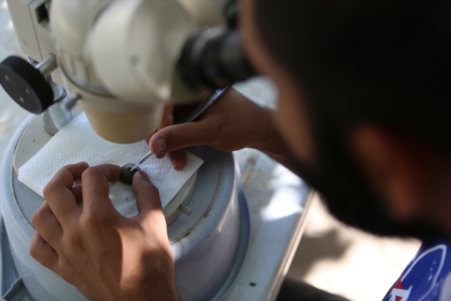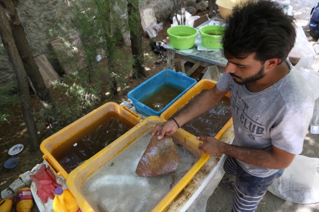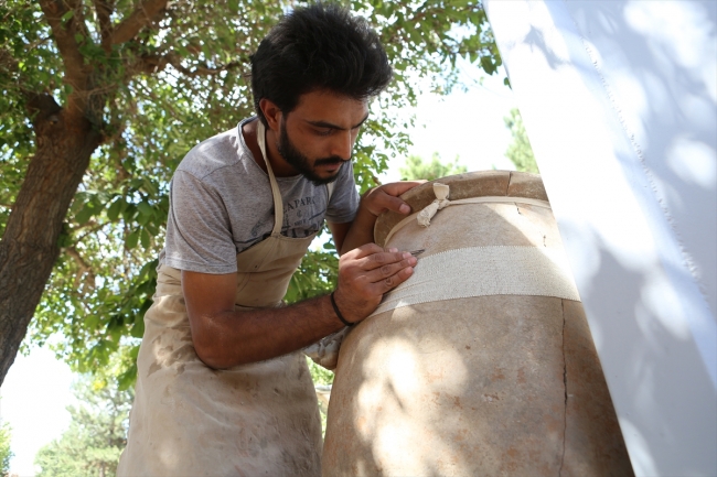 "Eser parçaları, kazı alanında bulununca poşetlenip bana geliyor. Burada ilk olarak kimyasal bir madde ile eser parçalarını temizliyoruz. Daha sonra da kimyasal maddenin arınması için suda bekletiyoruz. Sudan çıkarıp kuruttuktan sonra da birleştirme işlemini yapıyoruz. Hattuşa'dan çıkan parçaları bir puzzle gibi birleştiyoruz. Şu anda 3 bin yıllık olduğu tahmin edilen 16 adet pitosu (büyük küp) birleştirmek için çalışıyoruz."
