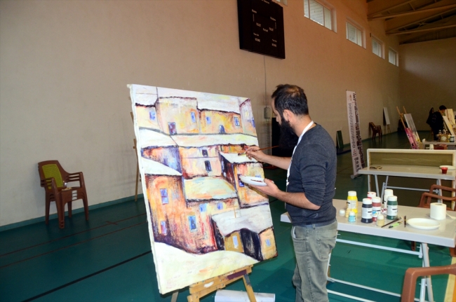 Köyleri ve ardından ilçe merkezini gezerek fotoğraf çeken 28 akademisyen, Hizan Spor Salonu'nda kurulan atölyede, bu fotoğraflara bakarak ilçeyi resmediyor.