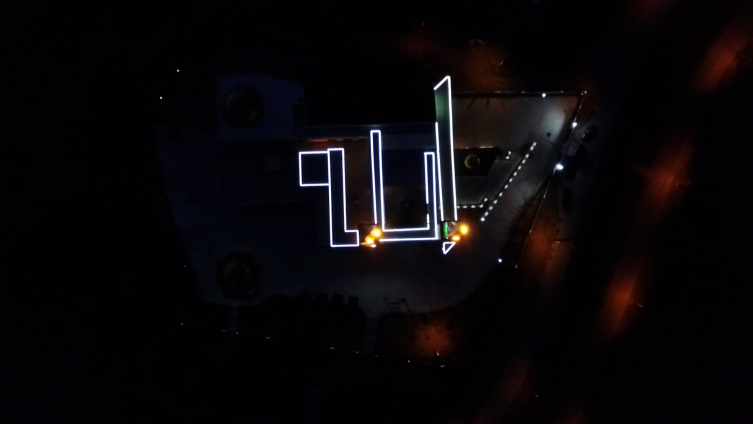 [Külliye içindeki Mescidi Rağbet camii, geceleri gökyüzünden böyle görünüyor.]Uçaklar ‘Allah’ yazısı görüyor