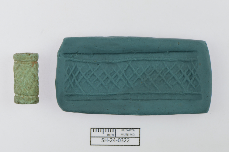 Gürdal, silindir gövdeli, yatay dairesel ip delikli mührün baskı yüzeyinin her iki uçta dairesel çizgiyle sınırlandırıldığını ve iki çizgi arasında kafes motifi biçiminde bezeme bulunduğunu bildirdi.