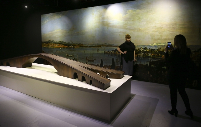 Orjinal çizimlerin bulunduğu 200'e yakın eser bu sergide sanatseverlerle buluştu. Onlardan biri de Haliç köprüsünün replikası.