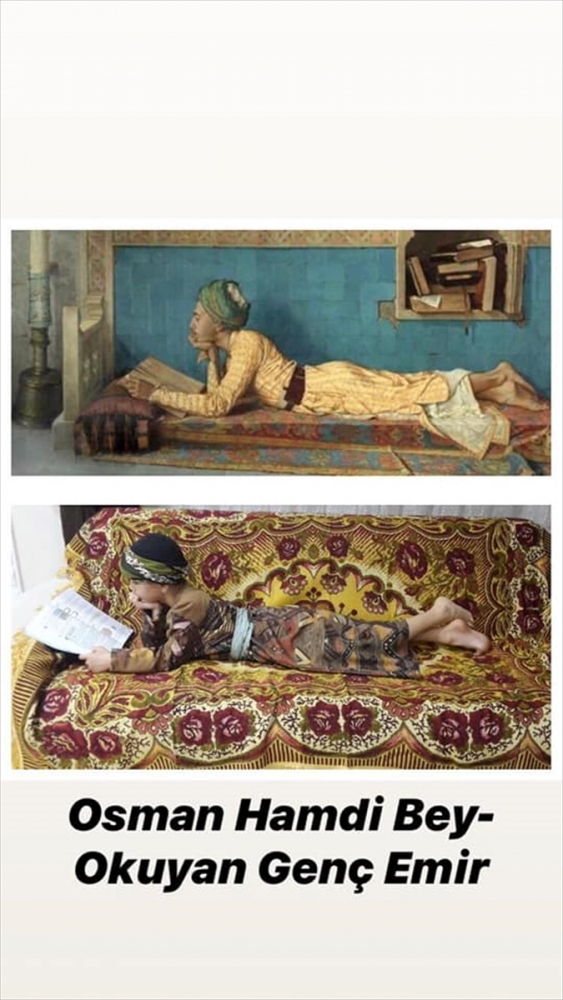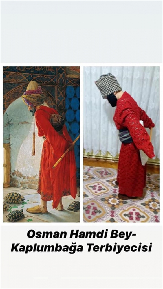 [Fotoğraf: AA]Öğrenciler, Abidin Dino, Osman Hamdi Bey, Frida Kahlo, Van Gogh gibi ressamların dünyaca ünlü eserlerini canlandırdı.