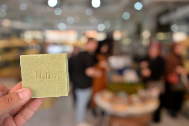 Sabun üreticisi Funda Aksan ise, iş yerinde 50'den fazla çeşit el yapımı ve bitkisel sabun bulunduğunu vurguladı.