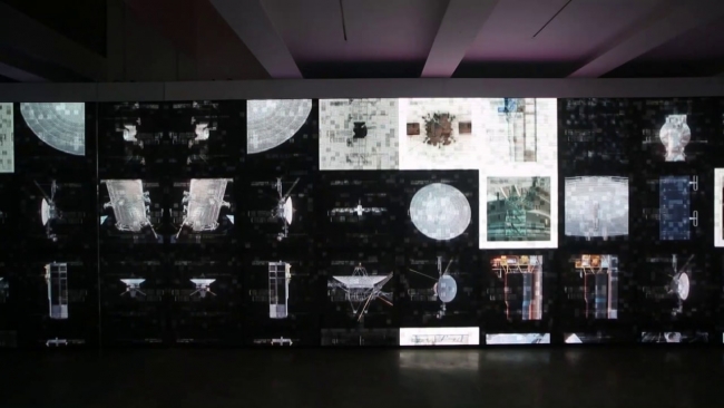 [Fotoğraf: TRT Haber]"Kimi zaman ekranlar içerisinde iki boyutlu deneyimler ya da izleyicinin içine adım atıp girebildiği üç boyutlu bir mekan. Ya da hatta Mars'ın muhtemel coğrafi yapısının üç boyutlu robotla heykelleşmesi. Bütün yapay zeka projelerinde olduğu gibi hikaye ham veriyle başlıyor. Mesela ISS teleskobunun bugüne kadar çekmiş olduğu 250 bin büyük ölçekli fotoğrafı... Mars yüzeyinin 100 binden fazla 30 bine 70 bin piksellik fotoğrafları... Hubble teleskobunun ilk çektiği dönemden son döneme kadarki fotoğrafları... Sergide kullanılan 4 milyon imge, yapay zeka ağından geçiyor ve benzerliklerine göre sınıflandırılıyor ve bir veri uzayı yaratılıyor. Bunlar daha sonra akışkanlar dinamiğinden geçiriliyor. Mesela bir yapay zeka, Hubble teleskobunun galaksi üzerine gördüğü bir rüyayı alıp, yine akışkanlar dinamiğiyle buluşup, sergide çok göreceğimiz daha su gibi, sakinleştiren, dijital bir veri pigmenti görüyoruz. İşin bu kısmı daha sanatsal, öncesi daha bilimsel. İkisi bir araya geldiği zaman böyle bir deneyim ortaya çıkıyor."