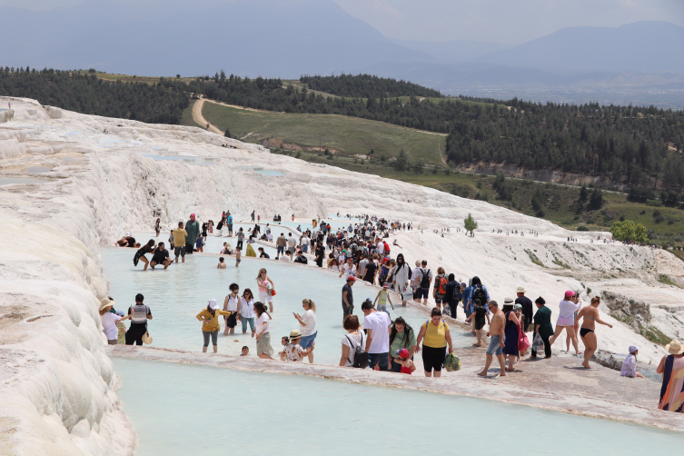 Geçen yıl ocak-haziran döneminde 604 bin 33 yerli ve yabancı ziyaretçinin gezip gördüğü Pamukkale, bu yılın aynı döneminde 811 bin 156 ziyaretçiyi misafir etti.