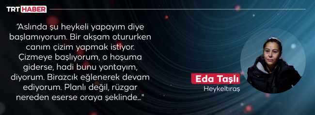 Eda Taşlı, 2004’den bu yana en büyük hayali olan heykel sanatıyla uğraşıyor. Taşlı, Güzel Sanatlar Fakültesi Fotoğraf Bölümü’nde eğitim aldıktan sonra bir süre medya organlarında fotoğrafçı olarak görev yaptı. Bu süreçte çizgileriyle hayaline ulaşmak için çalışmalarını şevkle sürdürdü. En sonunda ailesinin teşvikiyle her şeyi bırakarak hayalinin peşinden gitmeyi seçti. Eda Taşlı, heykele uzanan hayallerini ve yolculuğunu şöyle anlatıyor: