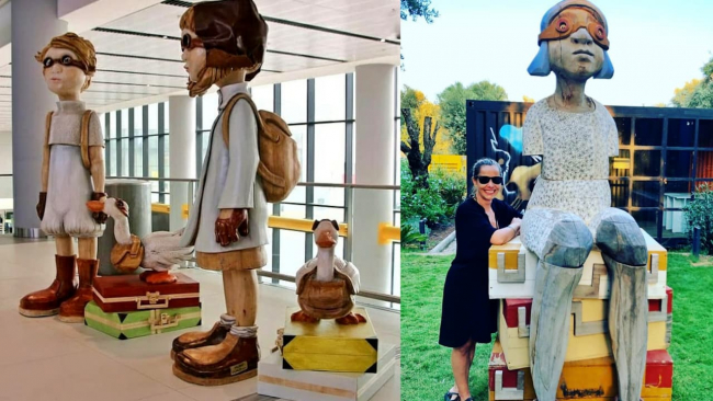 Biraz şaşkın, biraz ürkek ve masum… Kocaman gözleri, rengarenk kıyafetleriyle dikkat çeken dev çocuklar, İstanbul Havalimanı'na yolu düşenlerin karşısına dikiliyor. Bulundukları ortamı masal diyarından gelmişçesine değiştiren dev ahşap heykeller, Eda Taşlı’nın hünerli ellerinde hayat buluyor.