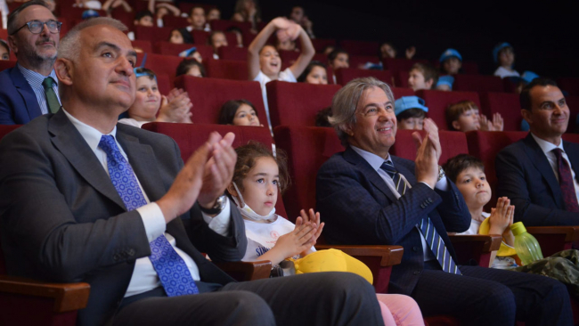 Kültür ve Turizm Bakanı Mehmet Nuri Ersoy, Atlas 1948 Sineması'nda gerçekleştirilen "Sinemaya Gitmeyen Çocuk Kalmasın" projesi tanıtım toplantısında çocuklarla buluştu.