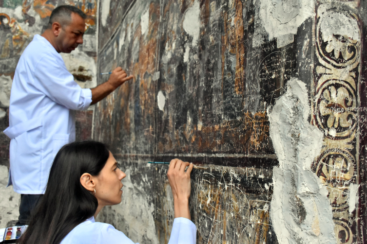 "Fresklerin üzerindeki bu yazıları, çizikleri veya vandalizm izlerini, 'aslına uygun renklendirme' ve 'kirli su' dediğimiz yöntemlerle yok edip daha iyi bir görsel sunuyoruz. Bu resimlerin üzerinde yapılan boyama tekniği katiyen yeni bir stil ya da figür oluşturmak değil, sadece o çiziklerin üzerindeki yazıları silmek, buna gayret ediyoruz. Buraya gelmiş birçok insan 'Siz neye dayanarak yapıyorsunuz?' diye soruyorlar. Biz sadece olan çiziklerin üzerini boyuyoruz, resimlerin üzerini boyamıyoruz. Çiziklerin üzerini boyadığımızda genel bir tablo ortaya çıkıyor. Öncesi ve sonrasını gösterdiğimizde insanlar nasıl bir çalışma yaptığımızı anlayabiliyor."