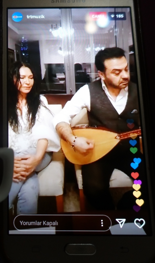 [TRT Müzik'in Instagram hesabından, sanatçıların evlerinden canlı yayınlanan konserde Cansu Koç'un seslendirdiği eserlere Ahmet Koç bağlamasıyla ve sesiyle eşlik etti. Fotoğraf: AA]Cansu Koç, zor bir süreçten geçildiğini, yayın bitince hemen evine gideceğini ifade ederken, Ahmet Koç ise tedbirlere uyduklarını ve sosyal mesafeyi korumaya dikkat ettiklerini söyledi.