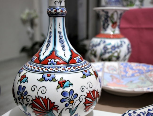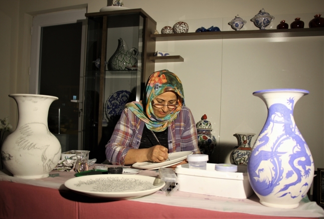 Bu sanatı yaşatmak için çocuklarına da öğretmeye çalışan Kaya'nın yaptığı çiniler ilgi görüyor.