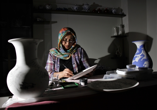58 yaşındaki Kaya, çocuk yaşta annesinin çeyizinde gördüğü çinilerden etkilenerek mesleği öğrenmeye karar verdi.