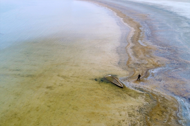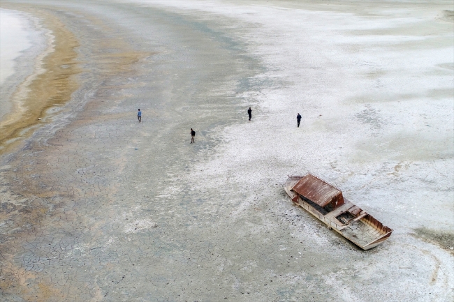 Yiğit, göl sularının çekilmesiyle önceden sular altında kalan arazilerin de ortaya çıktığını belirterek, şunları söyledi: