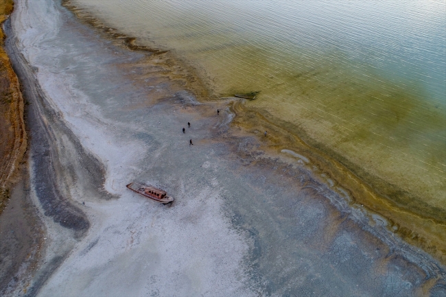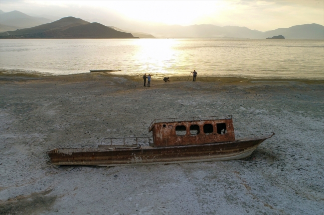 Van Edremit'te göl suları mevsim şartlarına bağlı yaklaşık 150 metre çekildi. Suların çekilmesi Enginsu Mahallesi'ndeki bazı vatandaşların tapulu arazileri ile önceden batmış 2 balıkçı teknesini gün yüzüne çıkardı.