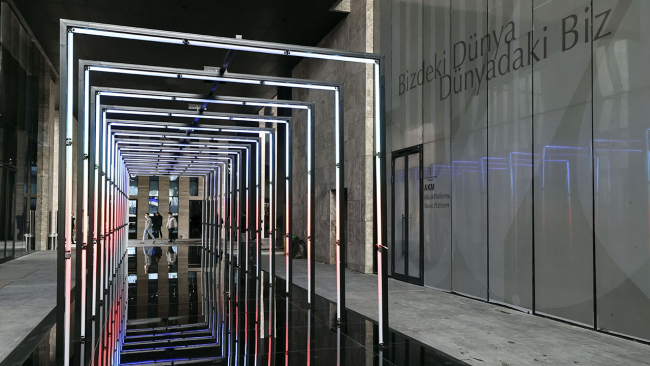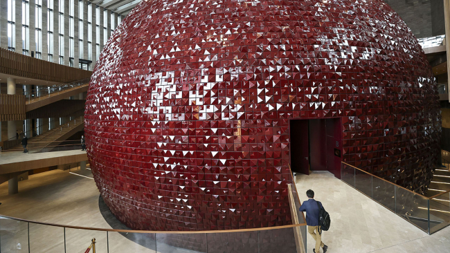 AKM'nin girişinde yer alan opera küresi, 15 bin özel el yapımı kırmızı seramik kullanılarak yapıldı.