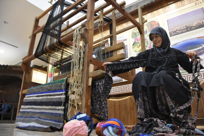 "Tezgahımızı Bilecik Pazaryeri Sarıdayı Köyü'nden getirdik. Maalesef depolara atılmışlardı, yıllardır kullanılmıyordu. Biz de ona sahip çıkalım müzemize getirelim, müzemize bir değer kazandıralım istedik. Aynı zamanda bu kültürü müzemize gelen ziyaretçilerimize anlatalım, gösterelim dedik. Eskiyen, çöpe atılacak kıyafetlerimizin makasla kesilerek yumak haline gelmesi ve bu yumağın da ardından tezgahta kilim haline gelmesini anlatmaya çalışıyoruz."