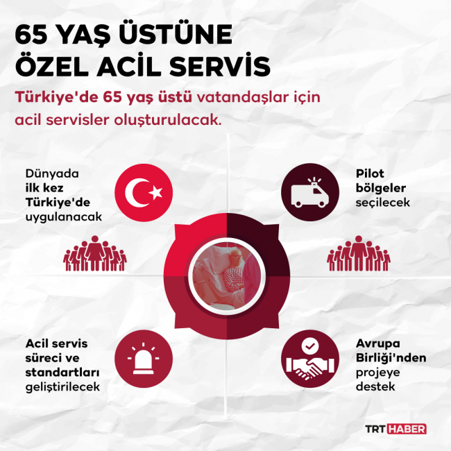 Sadece 65 yaş üstündekilere yönelik acil servislerin kurulmasını öngören projenin, Türkiye'de ilk defa uygulanması ve model oluşturması hedefleniyor.