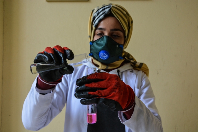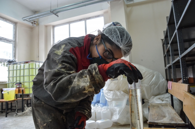 [Fotoğraf: AA]Okulda üretilen hipoklorit esaslı yüzey dezenfektanlara yurt genelindeki kamu ve özel sektör kuruluşlarından yoğun talep geliyor. Öğrenciler, Türkiye'nin birçok yerinden gelen siparişleri yetiştirmek için çalışıyor.