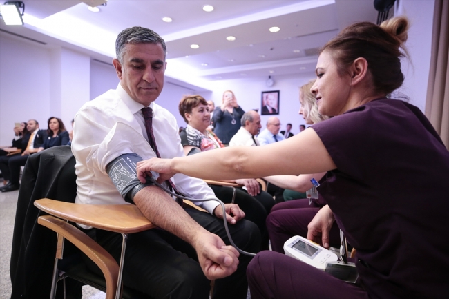 Türk Hipertansiyon ve Böbrek Hastalıkları Derneği Başkanı Prof. Dr. Ülver Derici burada yaptığı konuşmada, kişilerin en az yılda bir kez tansiyon ölçümü yaptırması gerektiğine dikkati çekti.