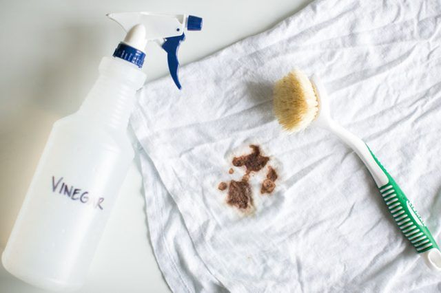 Diğer yöntem ise bir sprey şişesine doldurduğunuz beyaz sirkeyi lekenin üzerine sıkıp on dakika bekletmek. Sonrasında ise yumuşak bir fırçayla lekeyi ovarak çıkarmak.