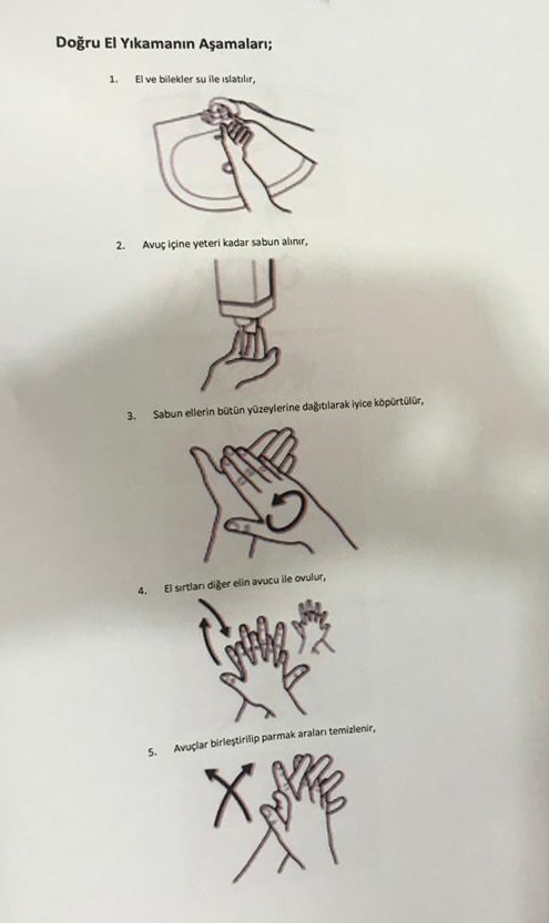 Bilgi notunda ayrıca doğru el yıkama aşamaları görsellerle anlatıldı.